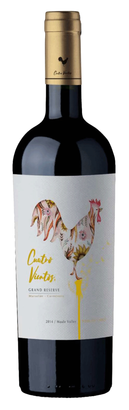 A Marselan egy szőlőfajta, amelyet a Cabernet Sauvignon és a Garnacha keresztezésével nyernek. A Marselan bogyók nagyon kicsik, kerek és elliptikus alakúak. Az ebből a fajtából előállított bor mélyvörös színű, lila árnyalatú, intenzív tanninokkal, mély koncentrációban és színben, gazdag polifenolokban. A Marselant elsősorban Franciaországban, Spanyolországban, Olaszországban, az USA-ban, Uruguay-ban, Argentínában és most Chilében termesztik! Két szőlőfajtából készítettük a Cuatro Vientos-t, amelyek tökéletesen kiegészítik egymást: Carmenère, a ma Chilere jellemző fajta és a Marselan. A bort 18 hónapig 60% francia és 40% amerikai tölgyfahordóban érlelték. Szín: intenzív és fényes sötétvörös. Illat: eperlekvár, feketeribizli és a paprika családjának illatai. Ízvilág: intenzív, érett gyümölcsaromák, mokka és kakaó. Ajánljuk sajtkülönlegességekhez, sült vadakhoz és sült libához.