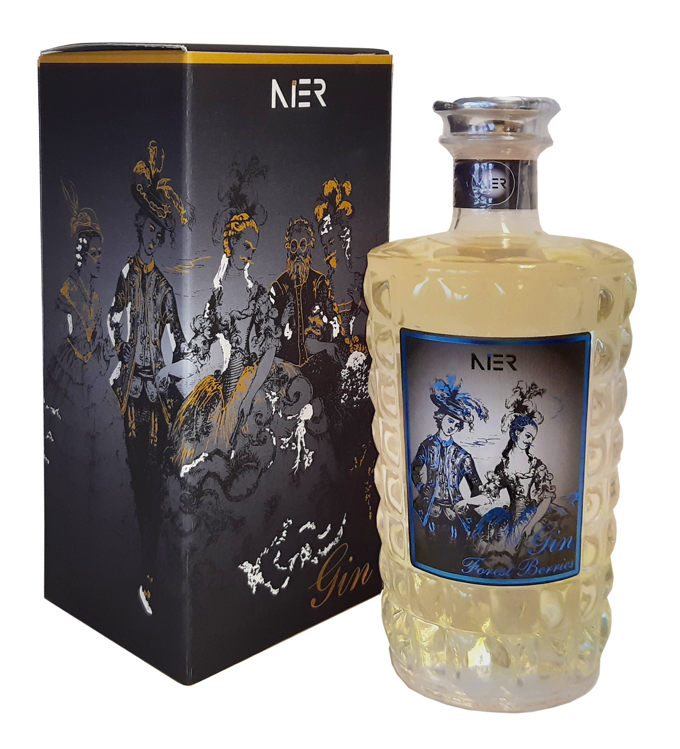 Frissítő ginünk egy erőteljes keverékből készült, egy csipetnyi cukorral, amely tovább fokozza az erdei bogyós gyümölcsök ízét. Világos, kékesfehér színben pompázik, színével is feldobja a koktélokat. Alkoholtartalma 46%. A gint Trentinoban állítjuk elő. Az alapja egy semleges fehér törkölypálinka + boróka + szeder és áfonya = Nier Gin, a szín a bogyók desztillációjából adódik. Mindez egy gyönyörű kristály palackban.