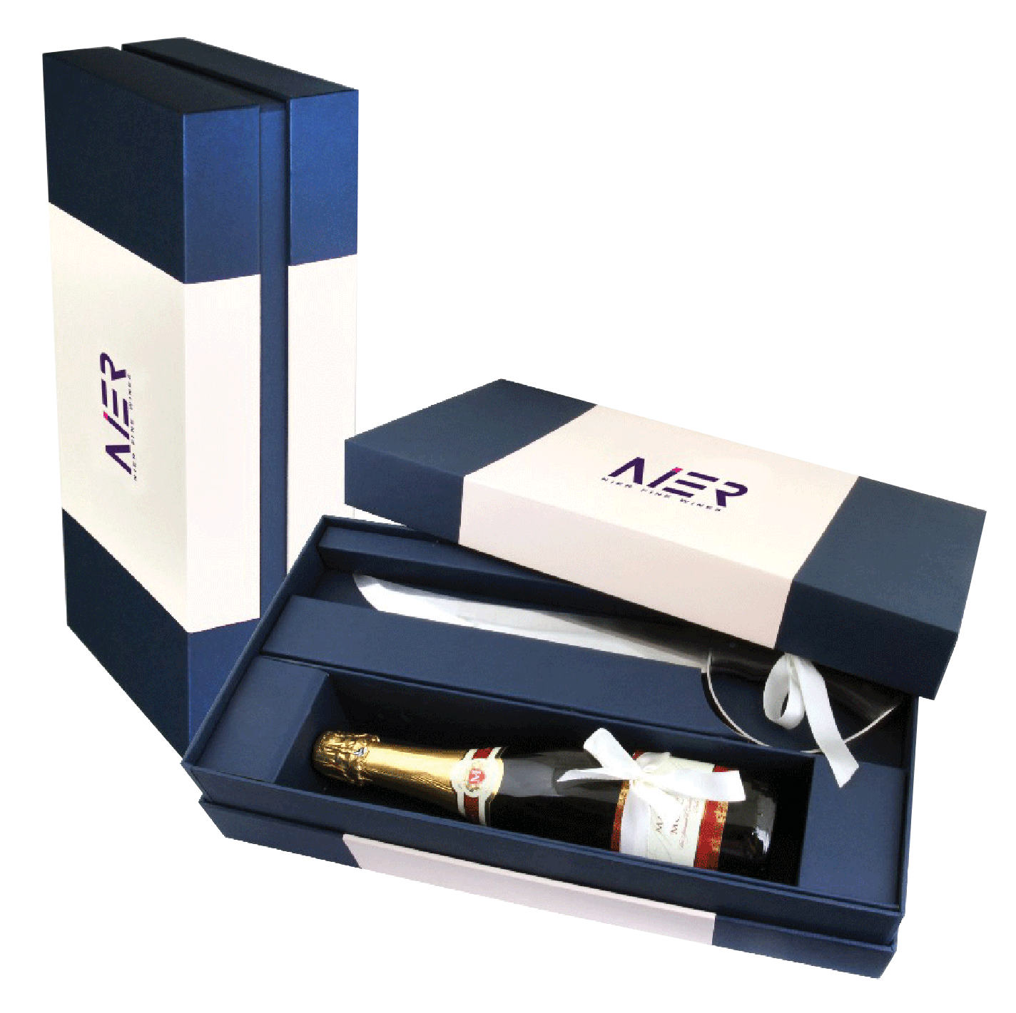 Összeállítottunk Önnek egy szablyával felszerelt dekoratív ajándékdobozt, melybe a minimum 3 bar nyomású pezsgő fajtáját Ön választhatja ki. Kérdezze pezsgő választékunkról borszaktanácsadó kollégánkat.