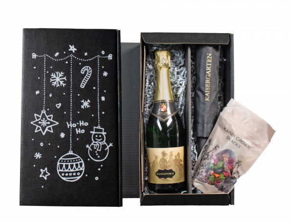 A Kaiserperle Riesling pezsgõ finom gyöngyözésével, frissességével és elegáns gyümölcsösségével varázsol különleges pillanatokat. Tökéletes kísérõje a roppanós csokidrazsé, amely édes hangsúlyt ad az élményhez. A szettet a magas minõségû, elegáns Kaisergarten esernyõ teszi teljessé, amely a praktikumot és a stílust egyesíti.