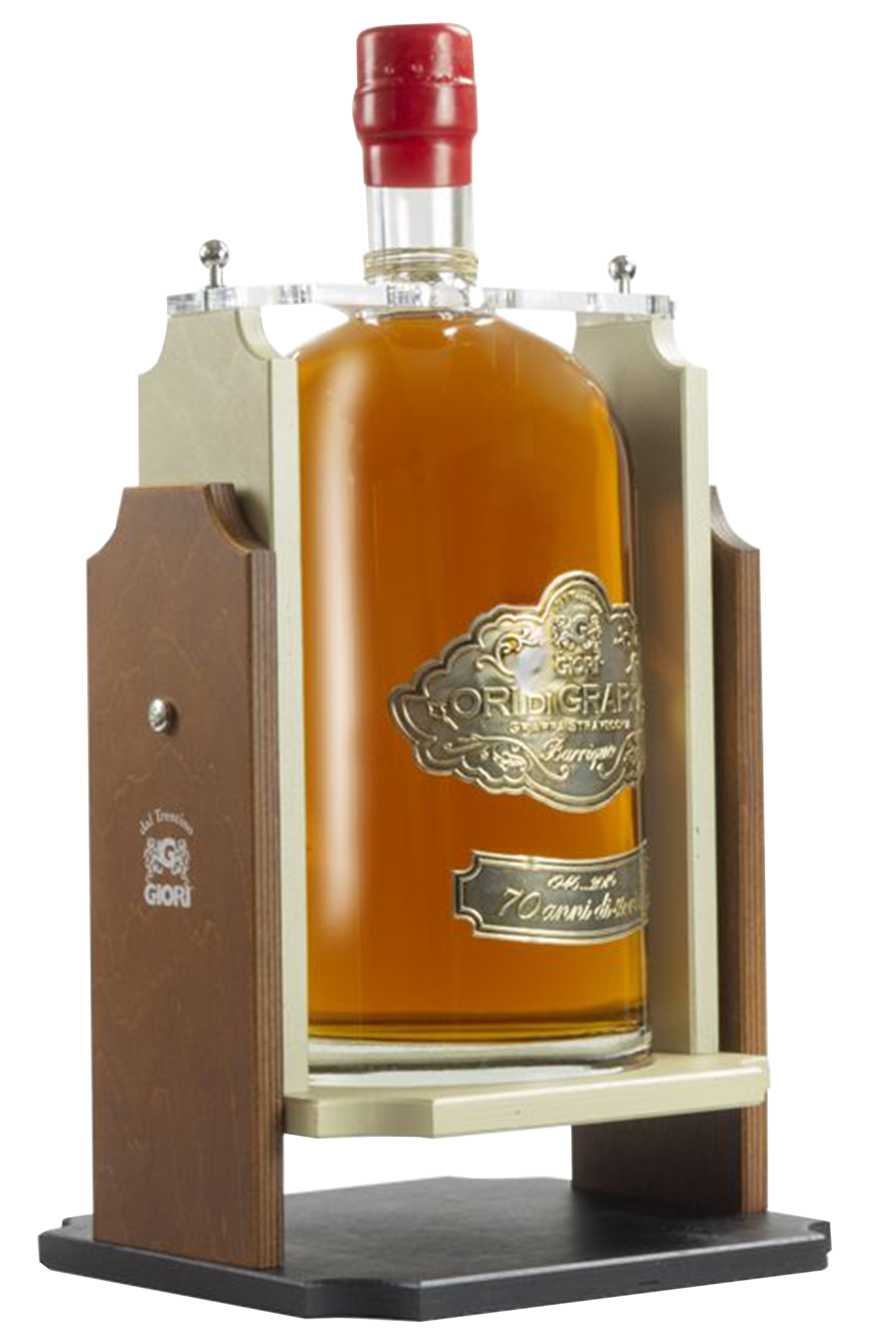 A Trentino-ból származó, egyedülálló Grappa Super – ORI DI GRAPPA Barrique” kizárólag gondosan válogatott szőlőből készül és 5 évig speciális fahordókban tárolják. Íze gyümölcsös és száraz. Alapja a chardonnay és a barolo szőlő. A faládába csomagolt hatalmas 4.5l-es palack olyan ajándék, melyet senki sem feledhet el.”
